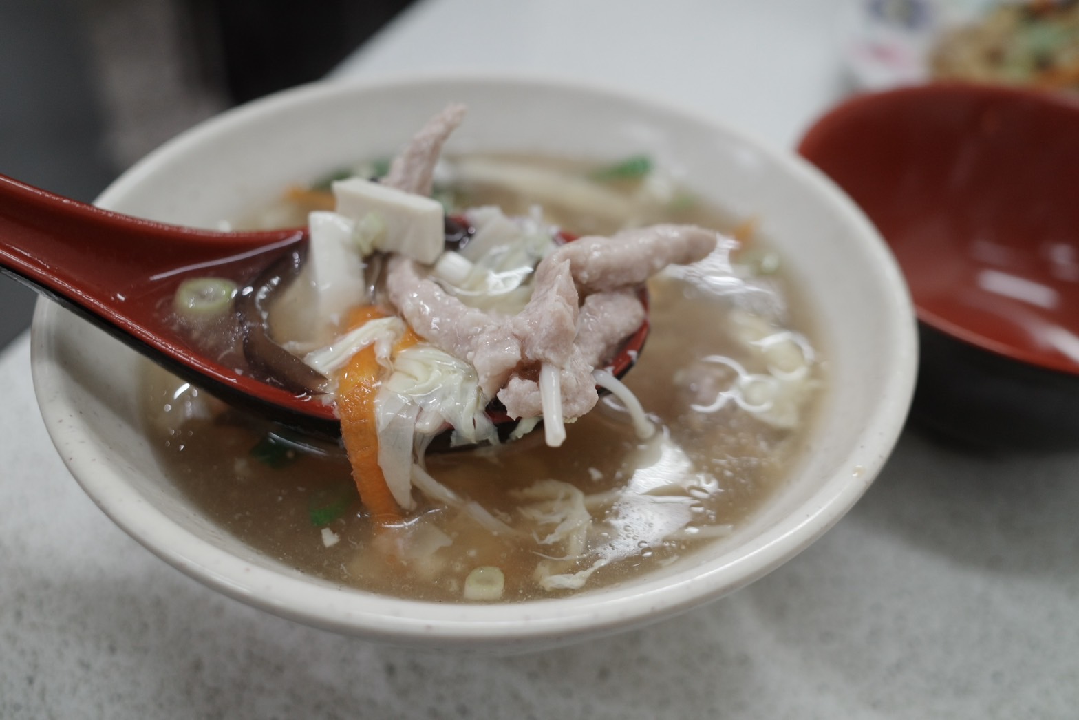 【李家麵館刀削麵】蛋蛋的哀傷,木須炒麵的木須是誰?現削、現煮、現炒的工廠產線超效率排隊招牌刀削麵,買飲料折5元的祕密Wen2023 年 2 月 19 日隨手寫小食 過去我們稱呼單價很便宜的股票叫雞蛋水餃股,但現在不管是水餃還是雞蛋,一點都不便宜了,尤其雞蛋,有錢還不一定買的到呢! 本文目錄 李家麵館刀削麵交通、店家資訊木須炒麵的木須是誰李家麵館刀削麵菜單 候位規則招牌木須炒麵 $135酸辣湯 $40高麗菜水餃十顆 $60台式泡菜 $30李家麵館刀削麵 現削現煮現炒吃刀削麵 隔壁飲料折5元Drink Store伯爵嚼嚼紅茶 $40-5= $35 儘管缺蛋只是一時的,但過去曾經歷過一顆雞蛋兩塊錢的時代恐怕是回不去了,過去早餐店常聽到的「加蛋ㄍㄟ五塊」也已成絕響,現在能找到一顆荷包蛋十元的已經算是佛心了。 李家麵館刀削麵交通、店家資訊 李家麵館刀削麵位在新北市中和區景新街404號0952 727 616【點我直接打開Google map】搭捷運的話可以搭到南勢角捷運站4號出口走500公尺 木須炒麵的木須是誰 每次看到木須,都想到卡通花木蘭裡面的那隻龍,但顯然的不是。木須炒麵裡的成份包含了雞蛋、豬肉、木耳絲、紅蘿蔔絲、青菜,以及手工刀削麵。如果讓我用猜的,我可能會猜木耳,畢竟有個木字,被切成木耳絲,看起來也有「鬚鬚」的感覺,稱它是木須,怎樣看都很合理。但代誌不是憨人所想的那麼簡單,答案揭曉,木須其實是雞蛋的意思,店家也特別做了個看板,介紹木須的由來。店家的看板寫著,因為清朝時的公公們對蛋這個詞有點敏感,所以決定找一個新的詞來代替,看到嫩黃色的桂花,跟炒蛋顏色類似,就決定選用桂花,作為雞蛋的代稱。桂花又稱木樨,也有人稱木須,總之用木須來代稱雞蛋,也就這樣流傳下來。 李家麵館刀削麵菜單 候位規則 第一次來李家麵館刀削麵時,被人潮嚇到,當時太餓了實在無法排下去。第二次來依舊是人山人海,但仔細觀察,發現大部分的人都是外帶,內用位置沒那麼難等。不抽號碼牌,也沒有點餐單,先在左邊的用餐區找到空出來的內用位置,記好桌號後直接到右邊的點餐區點,等到餐點上桌後會有人來桌邊結帳。現場明明人山人海,但從頭到尾都沒看到店員拿紙筆記,觀察下來也不太有送錯餐的問題,其實滿厲害的,真心佩服。 招牌木須炒麵 $135 若不是好奇這人潮究竟是為何而來,我對粗麵其實興趣不大。因為用了醬汁下去拌炒,儘管配色有青菜的綠、蘿蔔的紅、木耳的黑,但整體呈現讓我想到國小時不太喜歡吃的營養午餐,並沒有多大興趣。即便帶了這樣的成見,實際吃過後總算能理解生意好的原因,儘管一份要價超過百元,但份量不小,食量小一點的話或許可供3人食用,一家四口若買個兩份大概就很飽足了。除了份量外,味道也還不錯,麵條富有嚼勁,調味適中,連麵條長度都剛剛好,過去吃到的刀削麵長度偏短,有點像在吃長一點的貓耳朵,而這裡的稍微長了一些,比較有吃麵條的感覺。此外,配料給的也還算大方,尤其現在雞蛋如此珍貴,量仍不少,也算是真材實料了。 酸辣湯 $40 同樣雞蛋用量沒偷工減料,還有滿滿豬肉絲,酸味適中,通常我吃酸辣湯大概還要額外多加點烏醋,李家麵館刀削麵的酸辣湯酸度對我來說倒是可加可不加。勾芡的太白粉水放的比例偏少,雖然喝起來湯會比較稀,但我反而覺得是好事,太白粉這類勾芡用澱粉畢竟不是多健康的食物,少攝取點沒壞處的。 高麗菜水餃十顆 $60 符合這次的雞蛋水餃主題,點了十顆高麗菜水餃,沒有豬腥味,調味也剛好,沒有過多的辛香料,吃起來乾乾淨淨。值得嘉許的是水餃皮,不會軟軟爛爛的,如果有好吃的水餃,大概就長這樣了。 台式泡菜 $30 小菜均一價都是 $30,有豬耳朵、豆干、豆芽菜、花生黑木耳等等。選了一盤台式泡菜,就是每次吃臭豆腐都會希望老闆娘多放一點的那種,我覺得很好吃,跟老母做的味道很像,還算入味,量也不算太少,或許在台北住久了,對於量正常一點的餐點都會心懷感激了(誤) 李家麵館刀削麵 現削現煮現炒 麵團從塑膠袋中拿出來後,必須先在不鏽鋼檯上稍作揉捏 店員拿著麵團在鍋邊把麵條削進滾水中 小小的店面擠滿店員,一條龍做工,儼然是工廠生產線 儘管生意非常好,但從點餐到餐點上桌,並不會等太久,仰賴店內手腳麻利的員工們各司其職。仔細在現場觀察會發現,店裡的運作儼然就是工廠的生產線。最靠近外頭的是麵團的揉整區,預先製作好的麵團從塑膠袋中取出,揉捏整形成適當大小後,在滾水鍋邊迅速削入,等麵條煮熟後,再撈起來,往右邊遞送,接著右邊的員工接手,炒出一盤盤木須炒麵,每個人在自己的崗位上做好自己本分,出餐便能快速又順暢了。 吃刀削麵 隔壁飲料折5元 已經戒掉手搖飲好長一段時間,不會特別想去買飲料喝,但偶爾看到還是想買,尤其是等餐過程中看到隔壁飲料攤Drink Store水雲朵中和南勢角店斗大廣告寫著「吃木須刀削麵飲料折5元」,便掉入商人的陷阱了。有趣的是,點完飲料後我就在想,飲料店也沒有要我出示買麵的證明,又怎知道我到底吃不吃木須刀削麵,這才恍然大悟,不過就是個促銷手法罷了,而我這個小笨蛋不知不覺直接跳進陷阱還覺得自己省了5元。隔壁桌的客人比較認真,竟攔下麵店員工,問他隔壁的飲料店是否真的打折,但當時我準備離開了,就沒仔細聽麵店員工怎麼回應了就是。 Drink Store伯爵嚼嚼紅茶 $40-5= $35 雖然點完飲料後我就發覺掉進商人