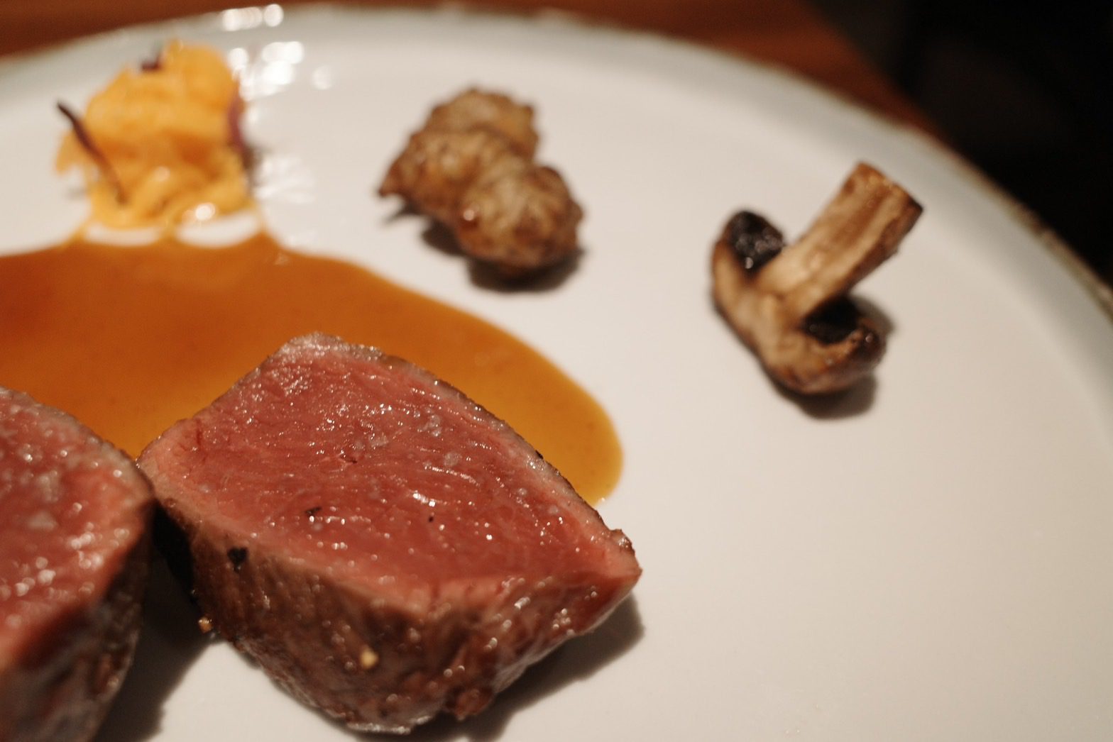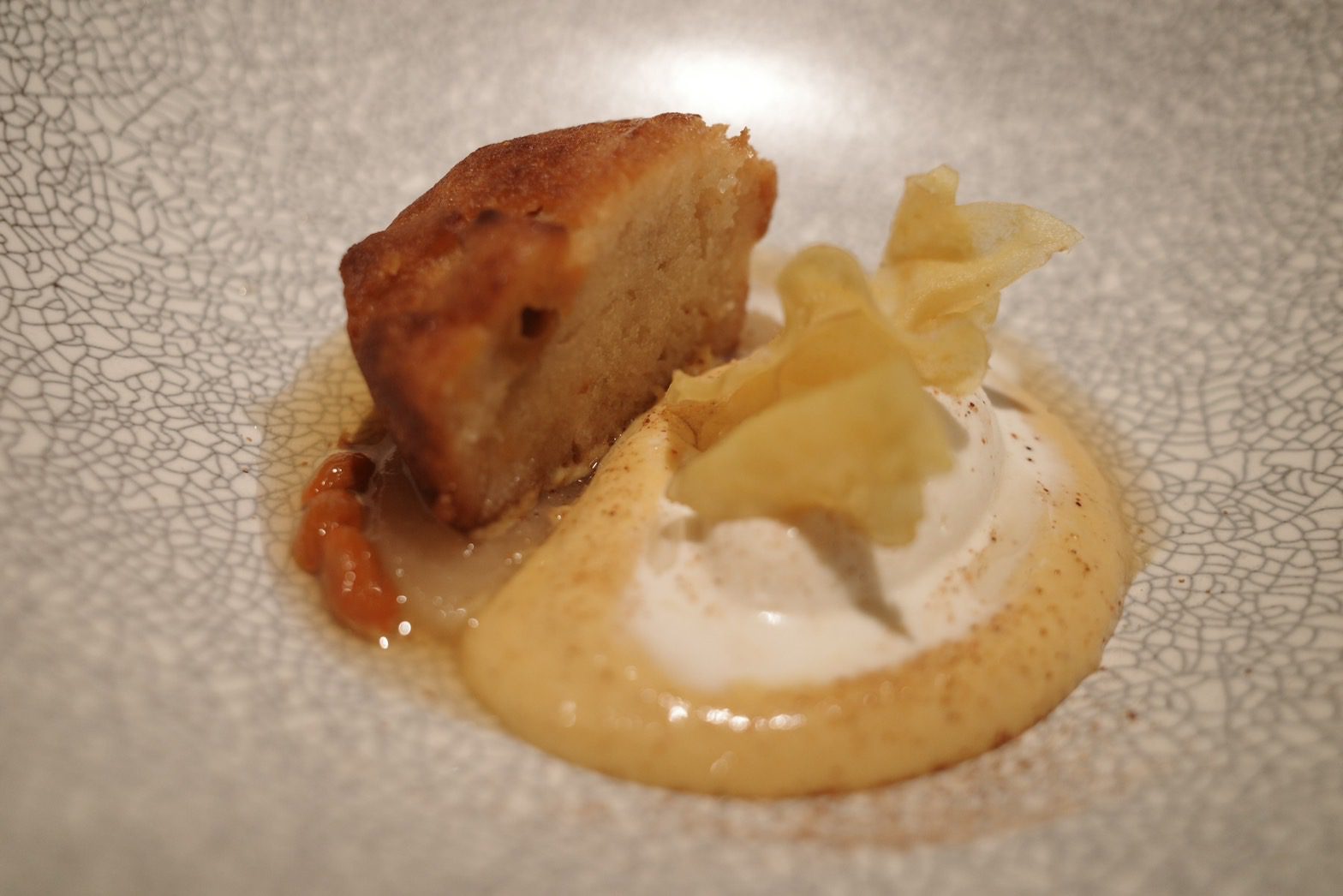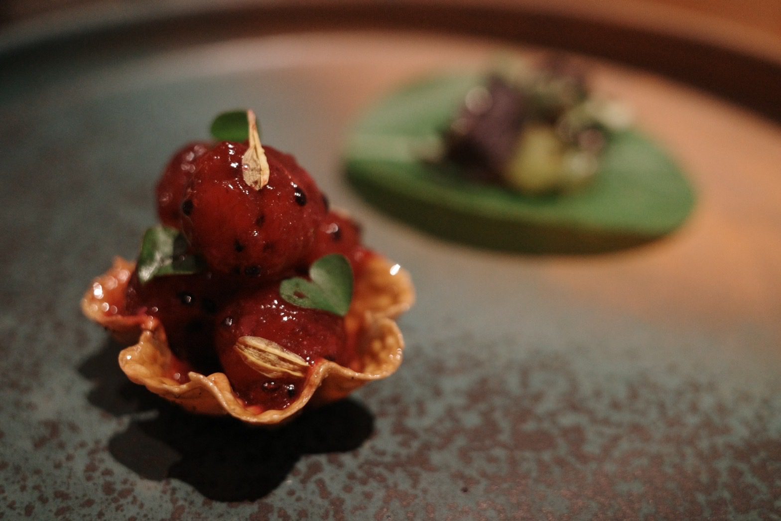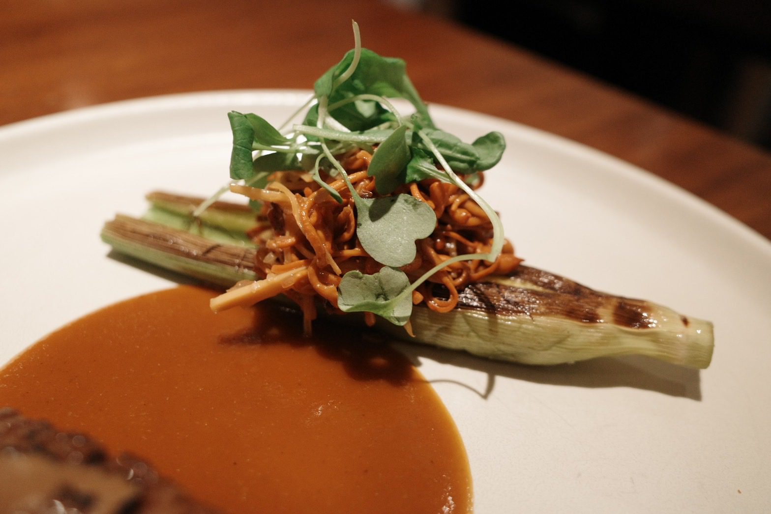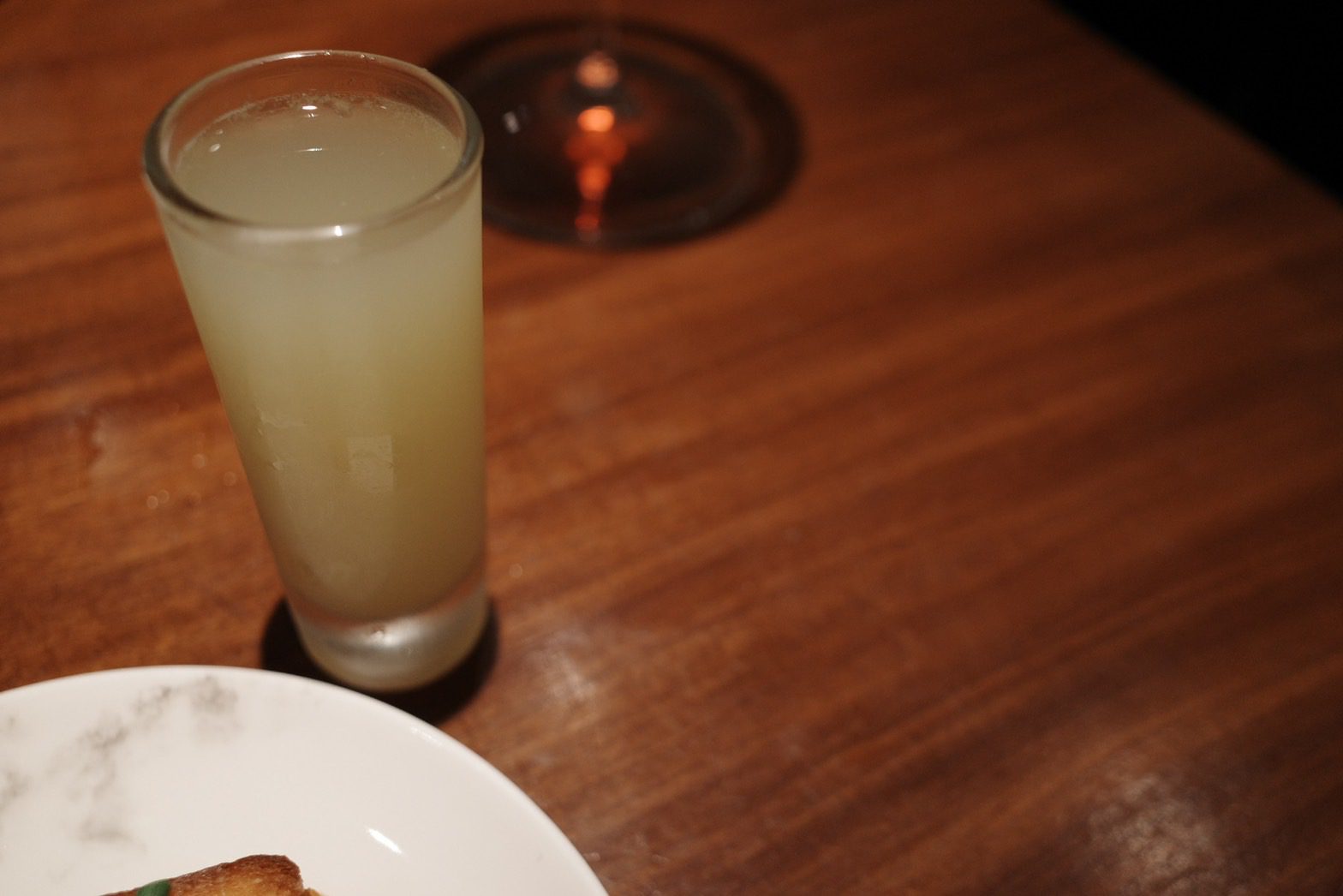 【VG Encore】鯤島之西,文不對題但不減美味的饗宴,首嚐鹿肉、櫛瓜花、櫛瓜梗、芋香冬瓜,泡在甜湯裡的費南雪Wen2023 年 2 月 19 日偶爾吃大餐 有位美食同好跟我說,去吃一家餐廳時,要先了解餐廳、主廚的背景,這樣才比較能吃懂餐廳想表達的意境。 本文目錄 VG Encore好吃嗎?VG Encore訂位、交通VG Encore價格VG Encore菜單迎賓湯亮皮魚 青花椒 假酸漿葉火龍果 紅棗 鹽漬櫻花柏露酒造 Hanabi 柏露花火 氣泡清酒熟成紅甘 蘋果 鹽定不在菜單上的鯛魚燒堺橋蝦 大頭菜 長年菜Ippolito 1845 Mare Chiaro Bianco季節鮮魚 芹菜根 榛果油Jean Loron Bourgogne Montvallon 2018八里白鵝 芋 櫛瓜花Grosjean Valle d'Aosta Torrette DOC 2020帕克牛奶麵包 豬/羊 楊桃無酒精 楊桃汁氣泡主餐A 紐西蘭鹿肉 肉桂蘋果 阿成南瓜Domaine Jean-Claude Lapalu VDF Cuvée Tentation 2021主餐B +$780 宮崎縣A5板腱 港式臘腸 酸筍北蟲草Lornano Chianti Classico D.O.C.G. 2015台農57費南雪 枸杞水梨 香草Elderton Golden Semillon 2022軟糖 小米 西西里卷芭樂心茶/中深焙哥倫比亞水洗豆咖啡Bye bye shotVG Encore心得 不斷思考這一段話,最後我覺得我不是太認同,並非覺得他講的不對,而是比起因著主廚、店家想表達的東西,去吃出他想給你的意涵,我更希望把自己倒空,把自己當成白紙,去體驗整個用餐經過。VG Encore的用餐經歷就是這樣的一個過程,我甚至沒印象為什麼會把它加入清單,就只覺得想吃,不知道餐廳背景,不知道想表達的東西,沒查任何食記,就像是出遊不做任何規劃,只拎個背包就上飛機這種感覺,腦袋空空,就來了。而我還滿喜歡這種感覺的。 VG Encore的原址過去是一間咖啡廳,叫做VG Café,Encore的意思是我們熟悉的「安可」,也就是再一次的意思。我想其命名的寓意,除了代表店家希望來品嚐的人都能意猶未盡地大喊「安可」外,也象徵VG Café的重新出發。 VG Encore好吃嗎? 單就料理而言,我覺得大致上表現不錯,酒水搭配也算合宜,只是不建議加價點和牛,選用的部位油花分布比較沒那麼均勻,會有在吃整塊肥油的感覺,不需加價的鹿肉表現就很不錯了,超出預期。餐廳氣氛算是比較輕鬆熱鬧的,也就是位置有點擠的意思,因為店面空間不大,桌間距離滿近的,能輕易聽到隔壁桌談天內容,要拍照也滿難避開,如果有安靜吃飯、談事情的需求,VG Encore可能比較不適合,但若只是想輕鬆地跟朋友享用晚餐、甚至有緣能跟隔壁桌客人交個朋友,倒是沒問題。 VG Encore訂位、交通 VG Encore使用inline系統訂位,需先綁定信用卡$1000元/人,除非臨時沒來,否則不會請款,因為只是綁定而已、沒有真的刷卡,所以總餐費在現場結帳時一次收取。搭捷運的話,可以搭到忠孝復興捷運站2號出口走750公尺【點我打開Google Maps】台北市大安區復興南路一段279巷4號0966591068 VG Encore價格 套餐NT$2780+10%/位,更換主餐需額外加價Pairing無酒精3杯 $9804杯餐酒搭 $16806杯餐酒搭 $2180 VG Encore菜單 店家會在菜單寫上賓客的名稱,請他幫我寫上WGL,是我部落格的縮寫,倍感溫馨 VG Encore這次的主題是西鯤島,鯤島就是台灣,常聽到的南鯤身指的便是台南的北門區,在台灣的南端。以此便不難理解西鯤島指的即是這次的主題,由台灣西部的食材主導。至於台灣為何叫做鯤島,我在這篇文章中找到答案。「鯤」指的是古代一種很壯大威武的魚,莊子在逍遙遊篇中便形容鯤魚在海中的逍遙自在。而台灣這座島嶼橫臥在太平洋中,周邊散佈各種小島,稱之為「鯤島」,再傳神不過了。入座時提供的擦手巾,使用迷迭香、柳橙、雪松等香草製做成的香草水,味道怡人舒適。 飲酒過量,有害(礙)健康 迎賓湯 入座時提供一小杯暖暖的雞湯,用漂亮的茶杯盛裝,可以暖手、暖胃。除了雞湯外,還加了老薑、巴西蘑菇、橙皮、胡麻油、孔雀菊。喝起來很舒服,是麻油雞湯的香氣,但不燥不熱,十分溫和。巴西蘑菇的蕈香味讓這杯雞湯更加清爽,可以續杯,我又多喝了一杯。 亮皮魚 青花椒 假酸漿葉 以假酸漿葉盛裝著基隆的竹莢魚、蘆筍以及青花椒,魚肉的味道比較濃郁,但假酸漿葉的氣味能加以平衡,不致於太腥。假酸漿是原住民常使用的食材,比較少人工種植,大多都是在野外採摘,多拿來包裹米飯製作成原住民傳統美食「阿拜」,有點類似粽子的感覺,但假酸漿葉是可以吃下去的,跟我們吃粽子時會把外頭粽葉拿掉的習慣不一樣。有趣的是,私心以為有假就有真,但遍尋不著哪來的「真酸漿葉」或是「酸漿葉」,或許是我的想法太單純了。 火龍果 紅棗 鹽漬櫻花 餅殼搭載著彰化的火龍果,鹽漬櫻花,以及紅棗做成的醬汁。餅殼十分香脆,不是酥脆那種,比較接近硬脆,使火龍果較為柔軟的口感得以平衡,我不太喜歡吃火龍果,因為有種奇特的香水味,但這樣的呈現我覺得還在可以接受的範圍,一方面這道菜小小的,火龍果的量不多,醬汁調味也稍微掩蓋住火龍果原本的味道,倒是吃不太出醬汁有紅棗味就是了。 柏露酒造 Hanabi 柏露花火 氣泡清酒 看到酒標還沒太大反應,只覺得有些面熟,但一入口馬上回憶乍現,這不就是先前在祝造飲Sake Bar喝到的HANABI嗎!日本的三大花火節,其中一個就在新潟縣長岡市舉辦,這支氣泡清酒的酒標上的煙火意象便來自於此。精米步合60%,豐富的水果香甜氣息,以及綿密的氣泡,酒精度只有8%,直接飲用就很討人喜歡,跟先前吃鰭佐樂時喝到的獺祭二割三分發泡濁酒一樣都是我喜歡的類型,不過我覺得獺祭的尾韻比較俐落一點。 熟成紅